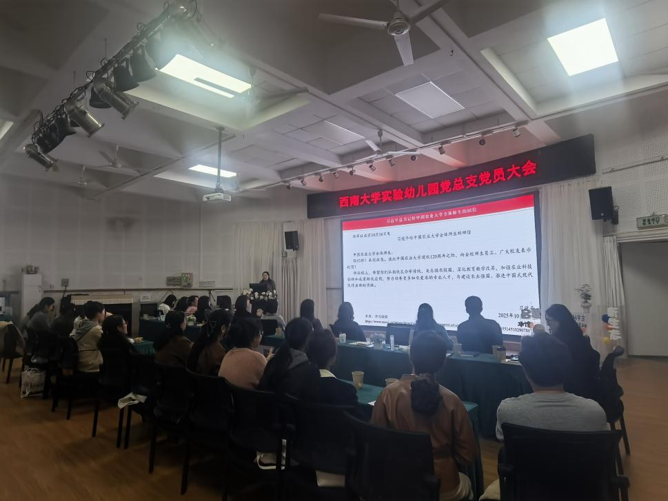 2025年11月14日,西南大学实验幼儿园行政党支部、教师党支部全体党员齐聚北区多功能厅,共同举行党员大会暨“深学全会精神,共谋‘十五五’发展新篇”的11月主题党日活动。
