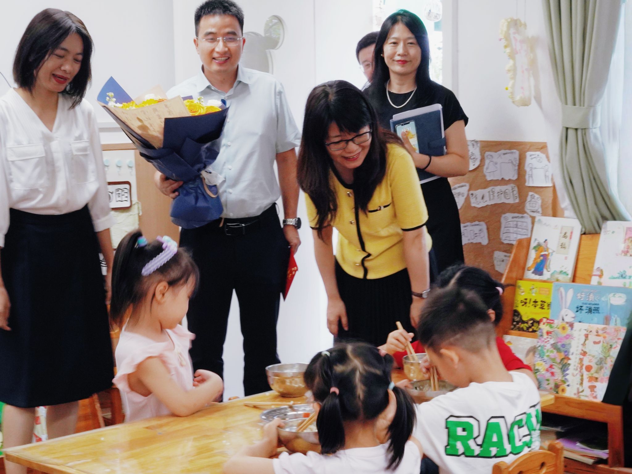 时值教师节前夕,赵玉芳一行来到班级看望慰问了我园2025年北碚区“园本教研活动策划竞赛”特等奖获得者、“卓越教研组”成员代表张璐琳老师,并向全体教职工致以节日的美好祝福;对老师们辛勤耕耘、潜心育人的奉献精神表达崇高敬意,并勉励大家以教育家精神为指引,继续坚守教育初心,担当育人使命。赵玉芳还与小朋友们亲切交流,关心叮嘱正在用餐的孩子们“好好吃饭,健康成长”。